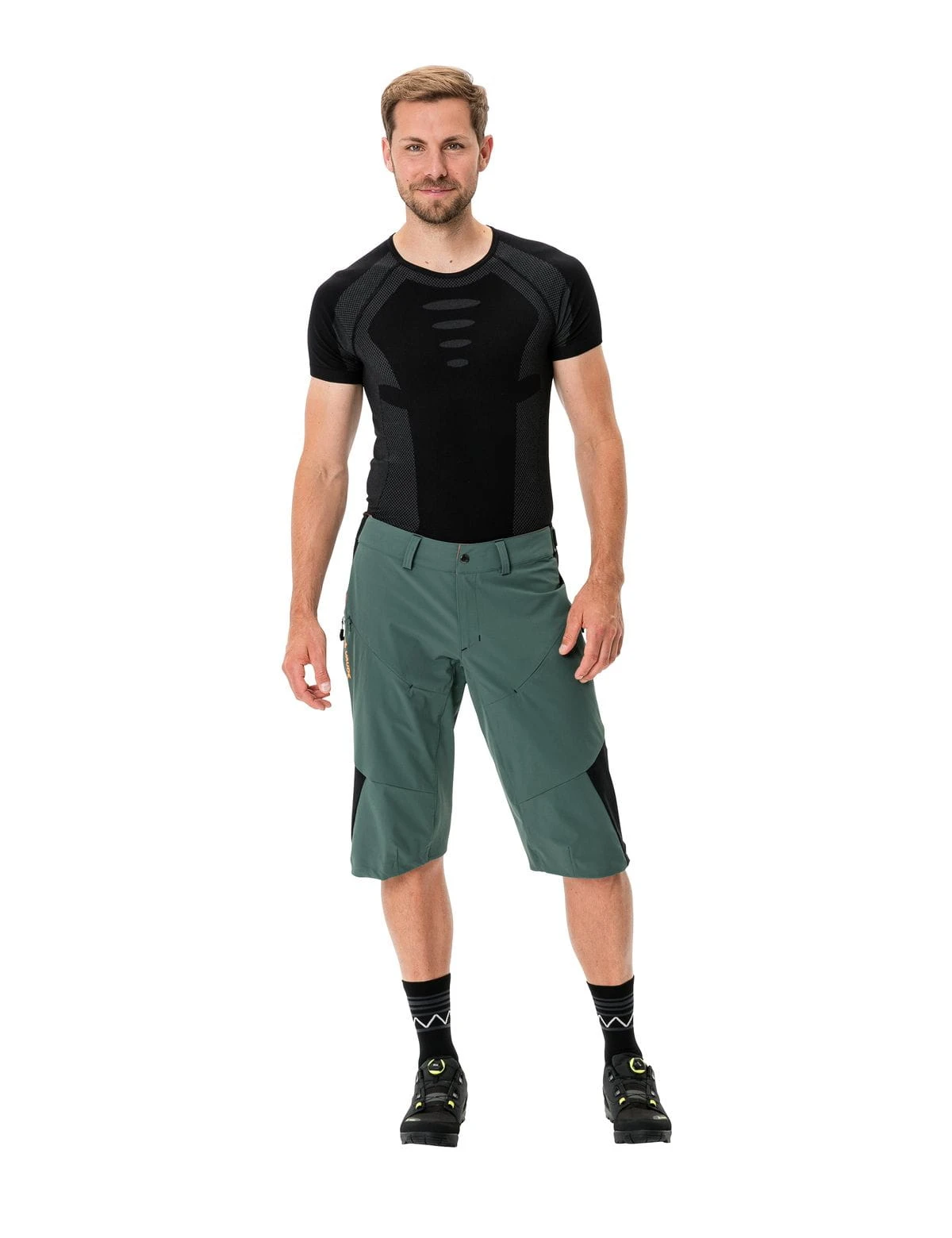 Met deze casual MTB shorts van lichtgewicht en bijzonder rekbaar 4-weg stretchmateriaal rijd je soepel door het terrein. Het milieuvriendelijke hoofdmateriaal met Windproof 80 functie is windafstotend en bijzonder robuust. De broek komt tot aan de knie; voor het dragen met pads kan de wijdte worden aangepast via een 2-weg ritssluiting, die ook als ventilatie dient. Dankzij de hogere tailleband achter met wijdteverstelling zit de broek precies waar hij hoort. Dit product is PFC-vrij met Eco Finish waterafstotende afwerking. Het VAUDE Green Shape label staat voor een milieuvriendelijk, functioneel product gemaakt van duurzame materialen.